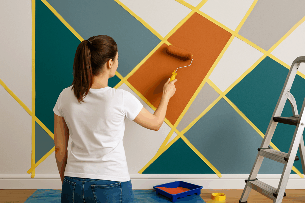 Variante 1: Geometrische Wandgestaltung mit Farbe & Malerband