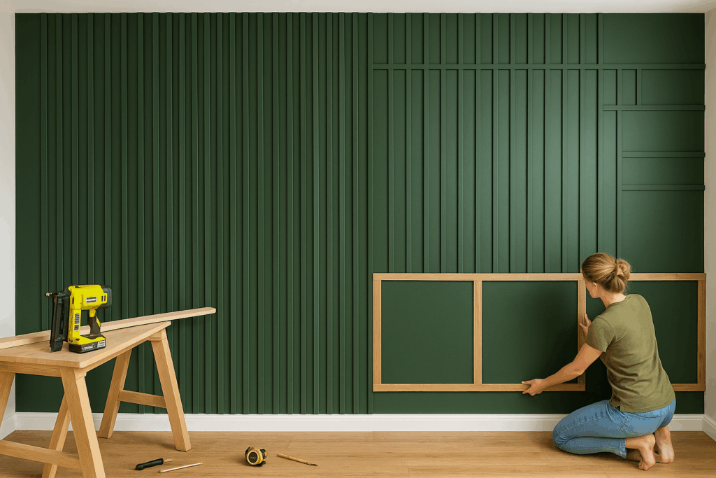Variante 3: Wandgestaltung mit Holzleisten (Streifen, Rahmen, Wandpaneele)